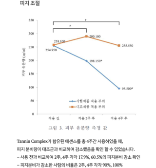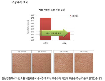 모공 수축효과,피지조절,모공(수·면적·깊이) 개선, 피부 결(거칠기) 개선이 확인 되었습니다